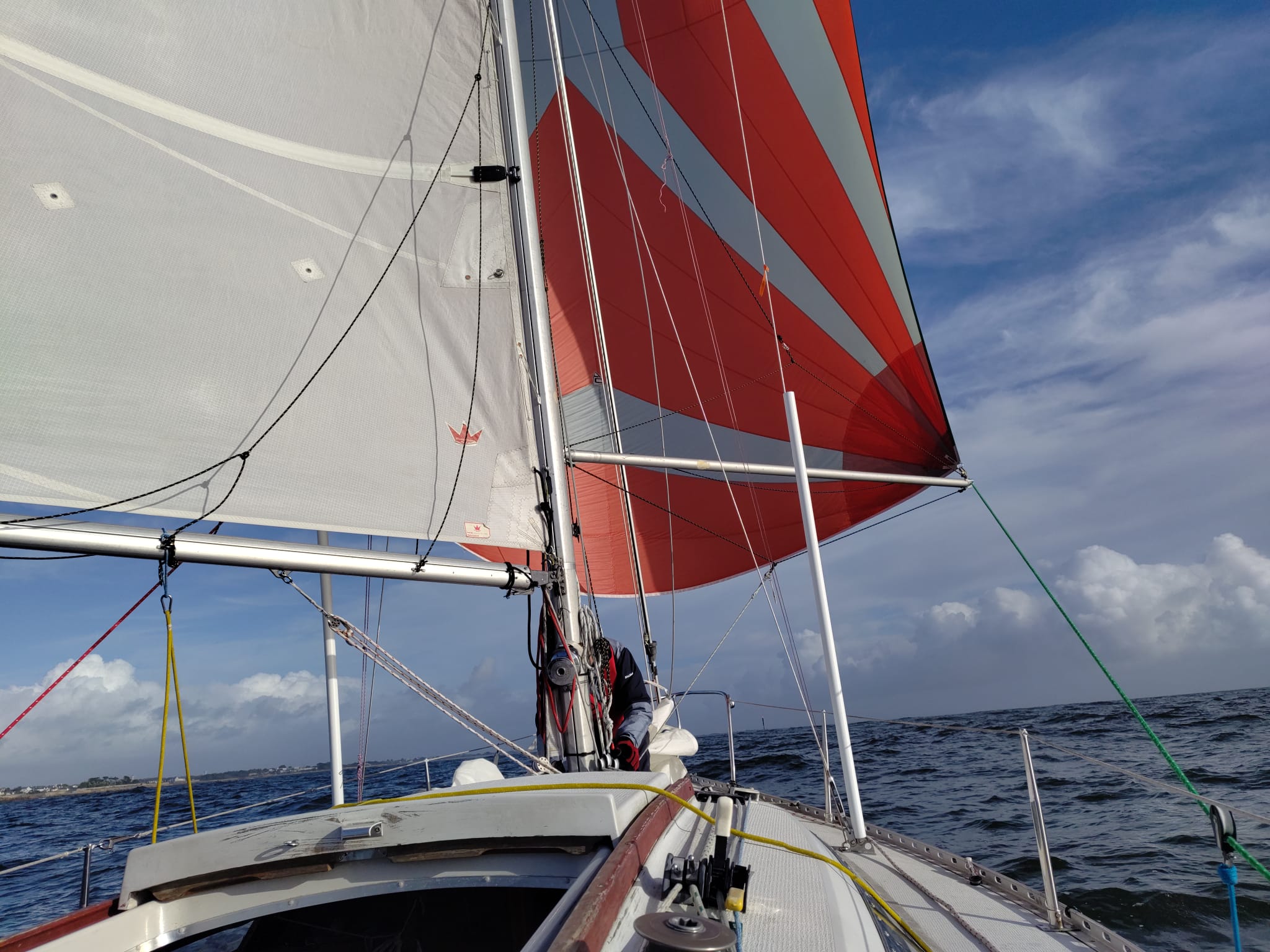 9h30. Après une sortie un peu rock’n ‘roll nous hissons la GV et déroulons le génois .