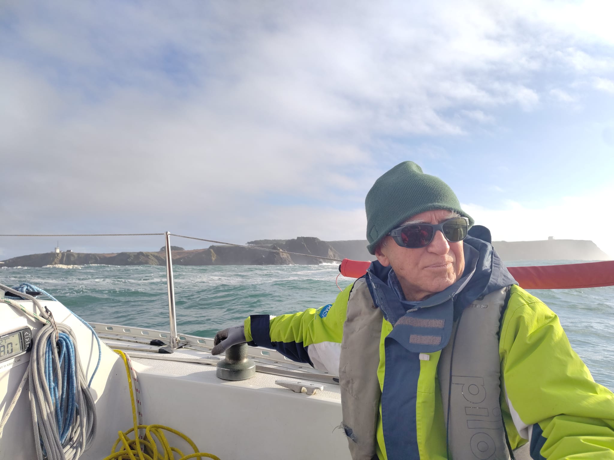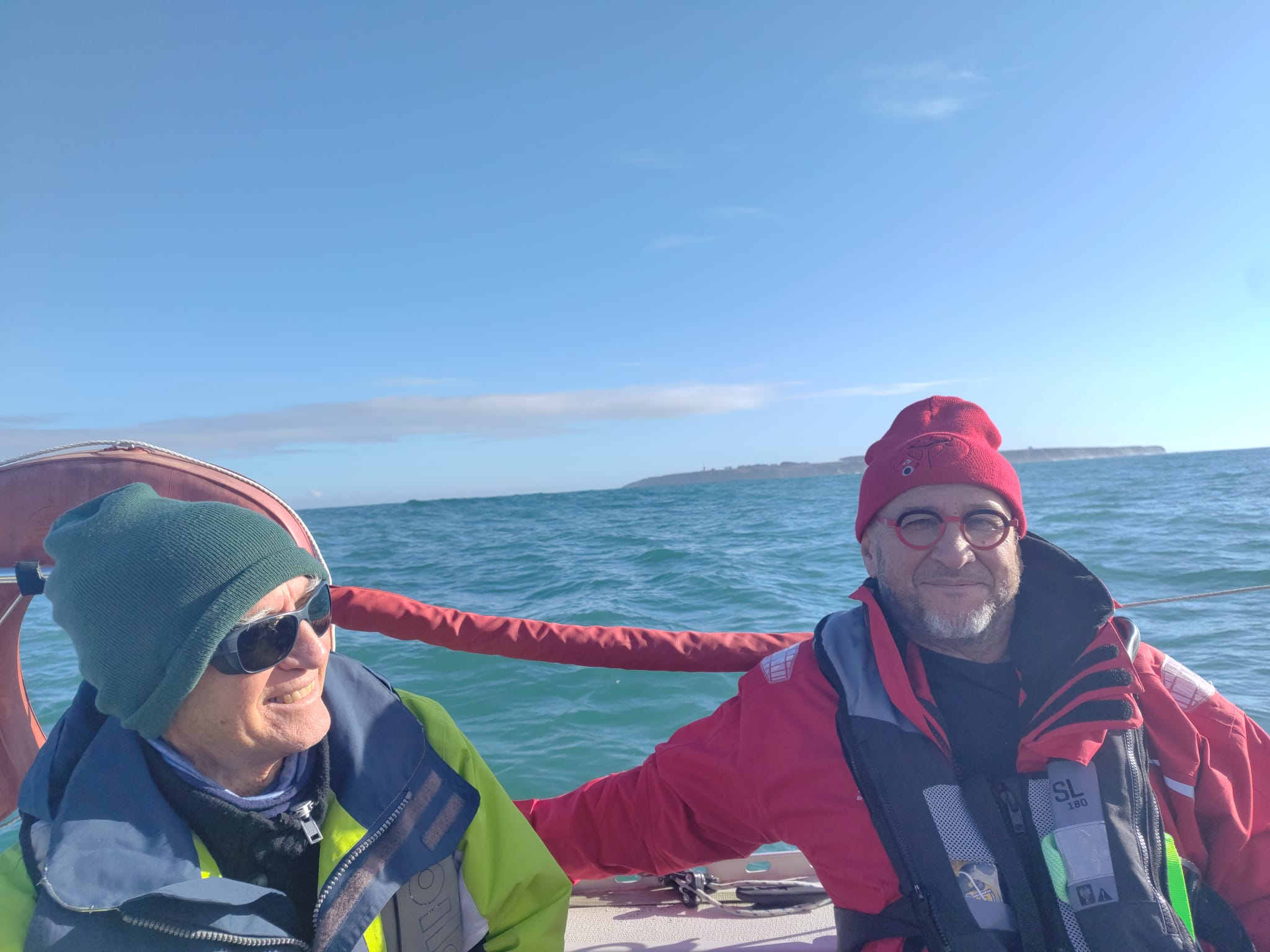 Après deux grands bords et avoir dépassé la pointe du talus nous nous redirigeons à 14h vers la rade et envoyons avec succès le spi (c’était une première pour l’ensemble des équipiers) .