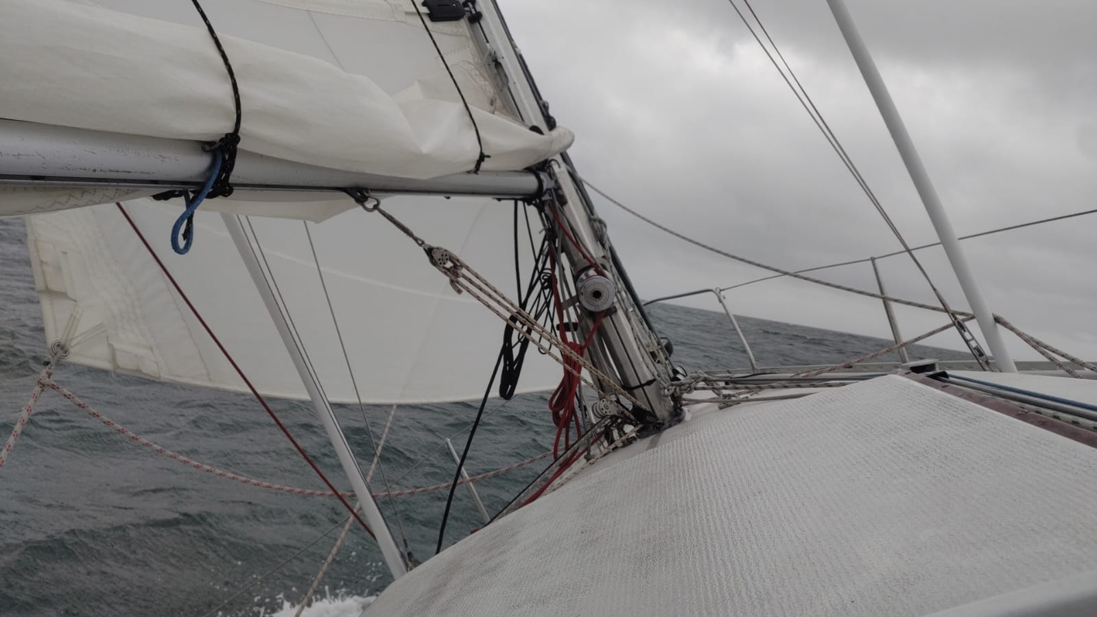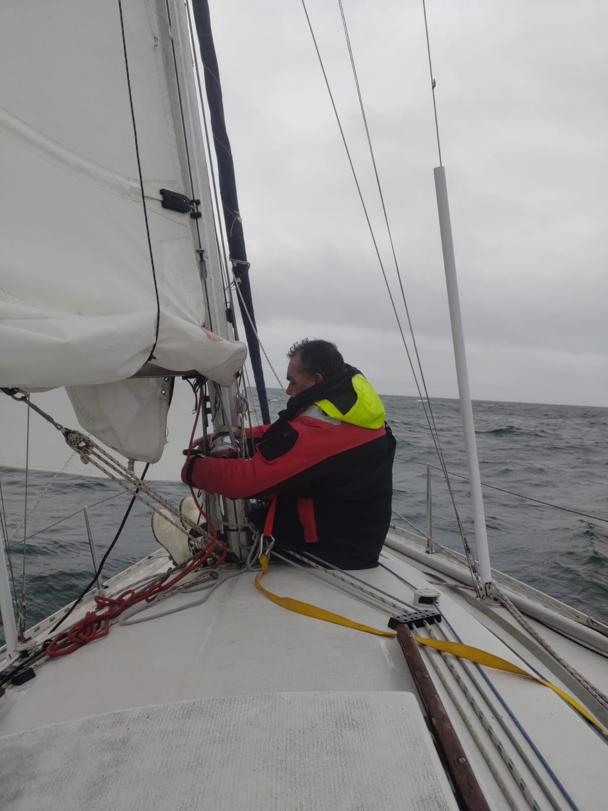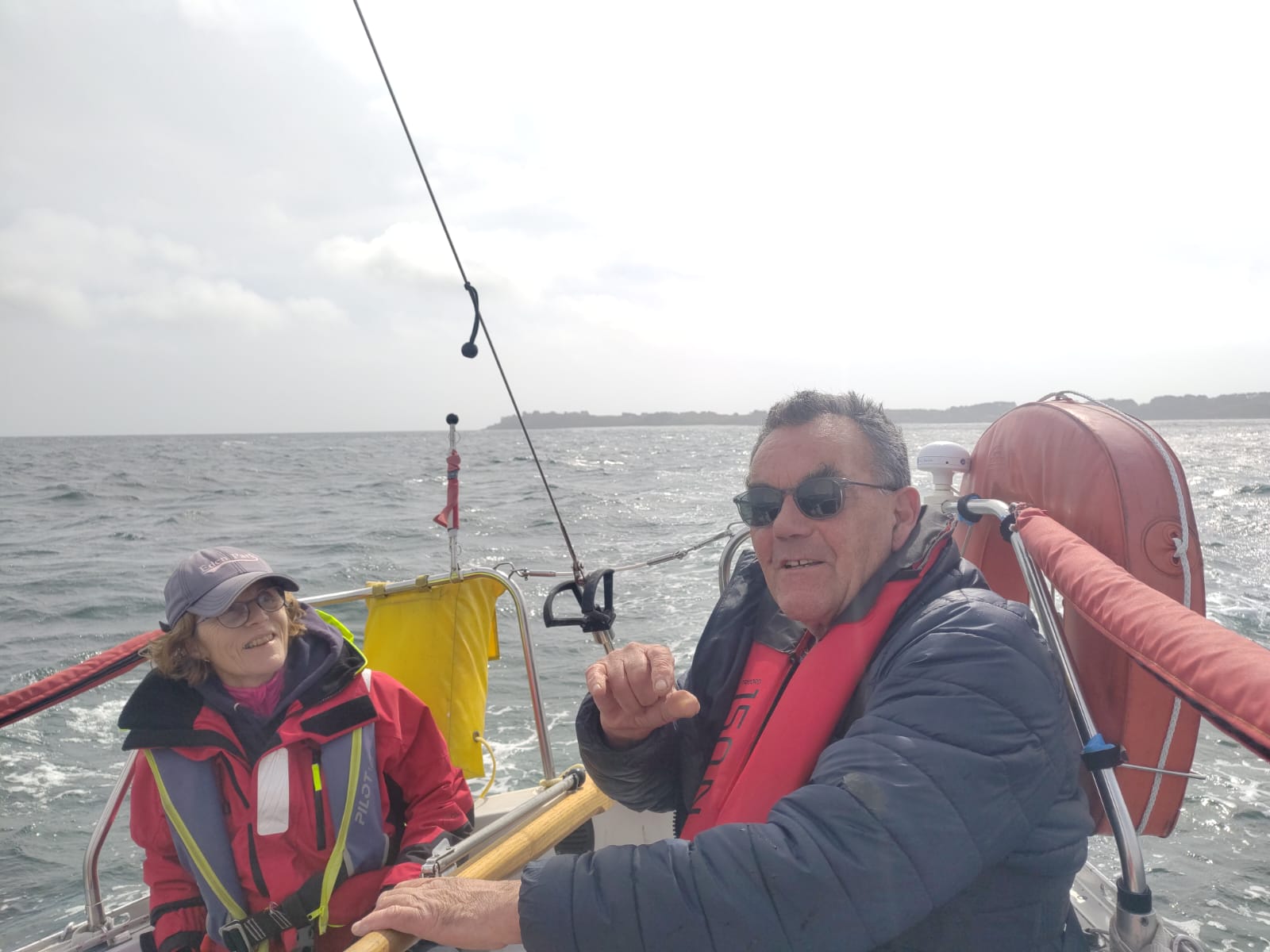 Le vent annoncé est présent et nous prenons la GV et le génois deux pastilles.