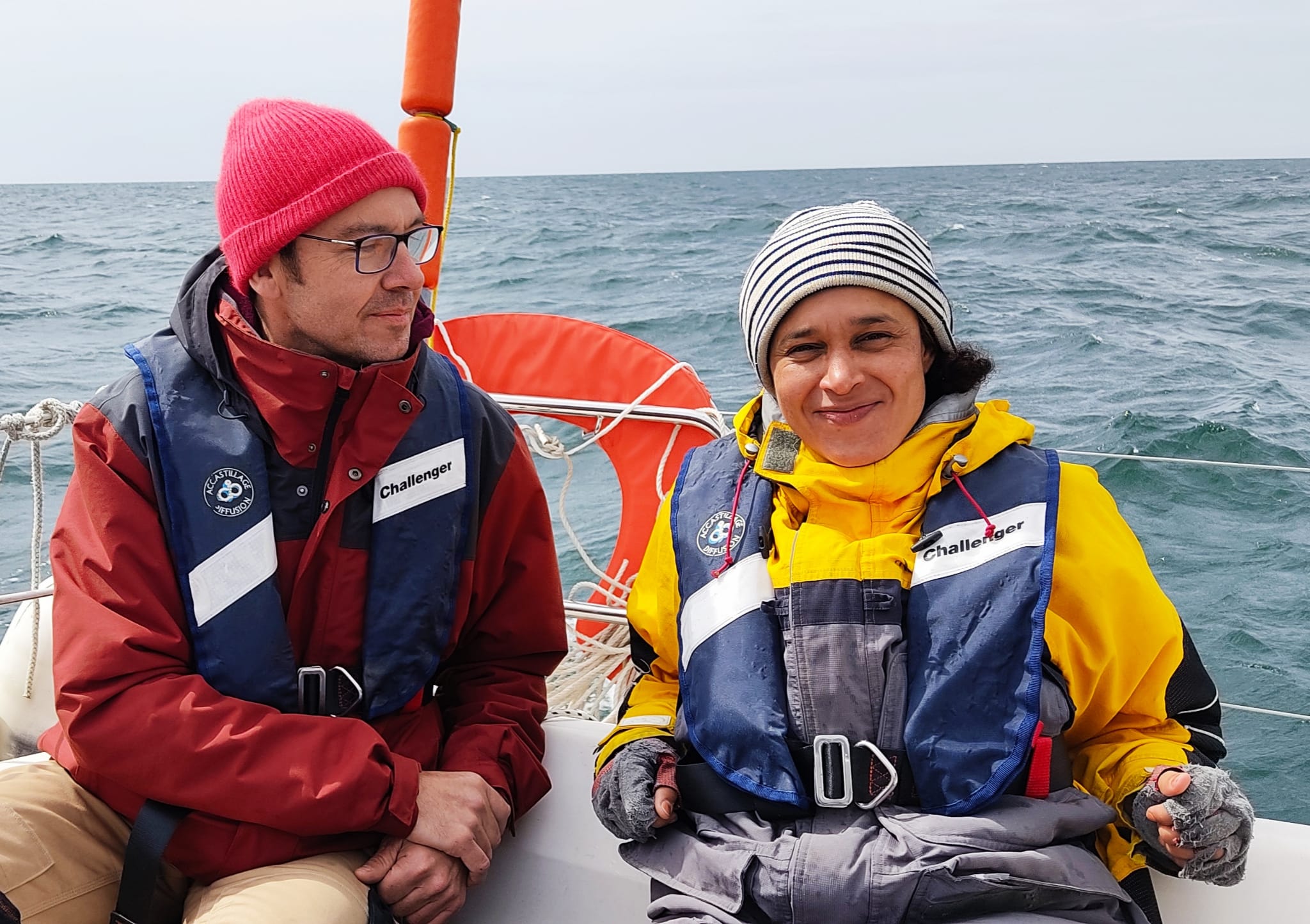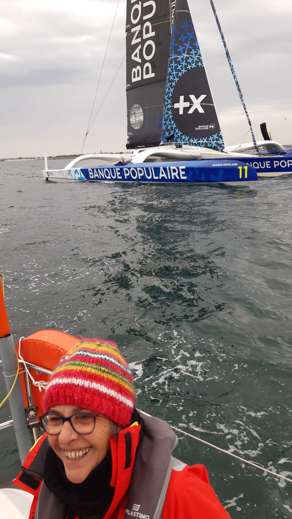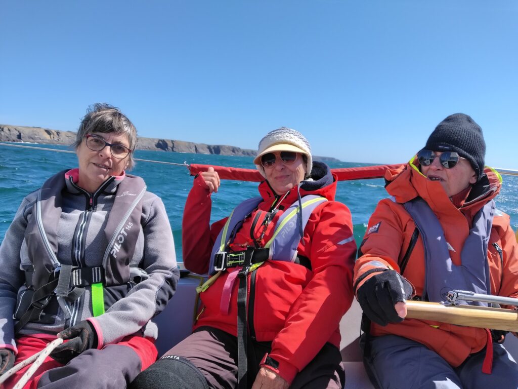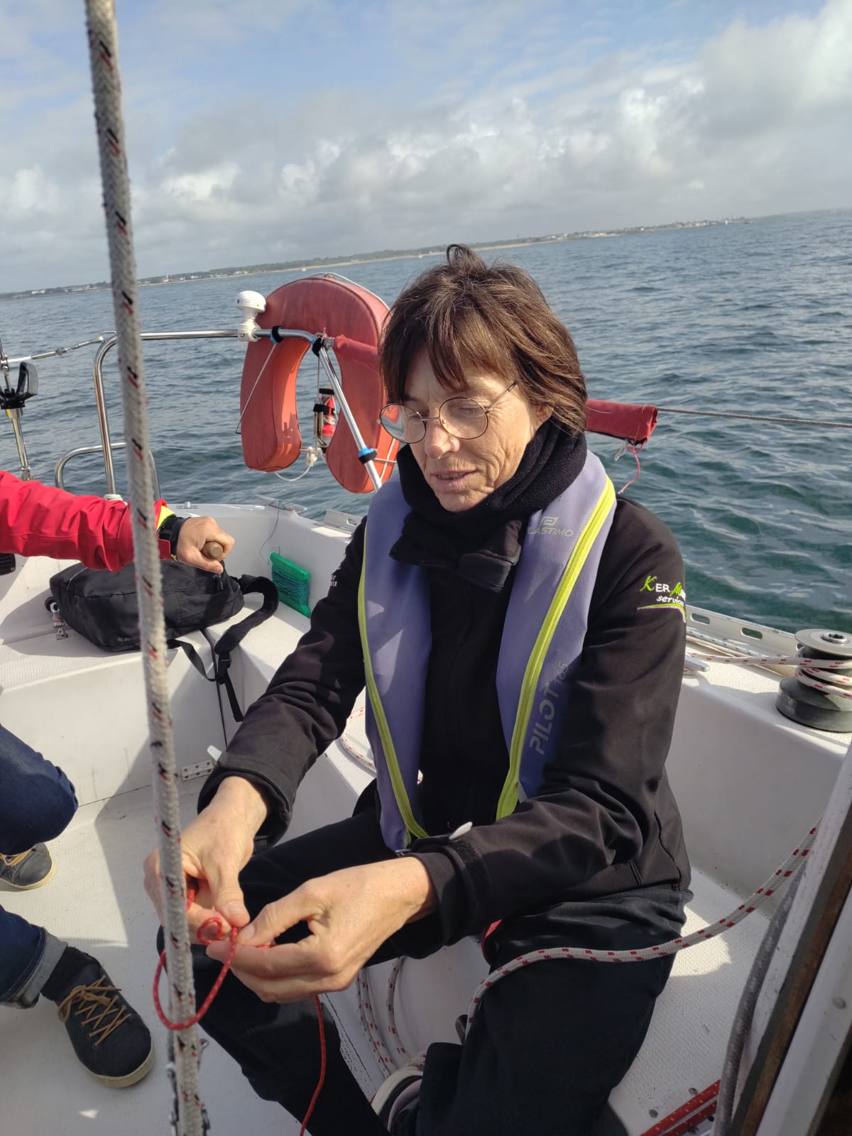 Muriel prend deux ris dans la GV, bien attachée à sa ligne de vie, mais ça gîte quand même pas mal !