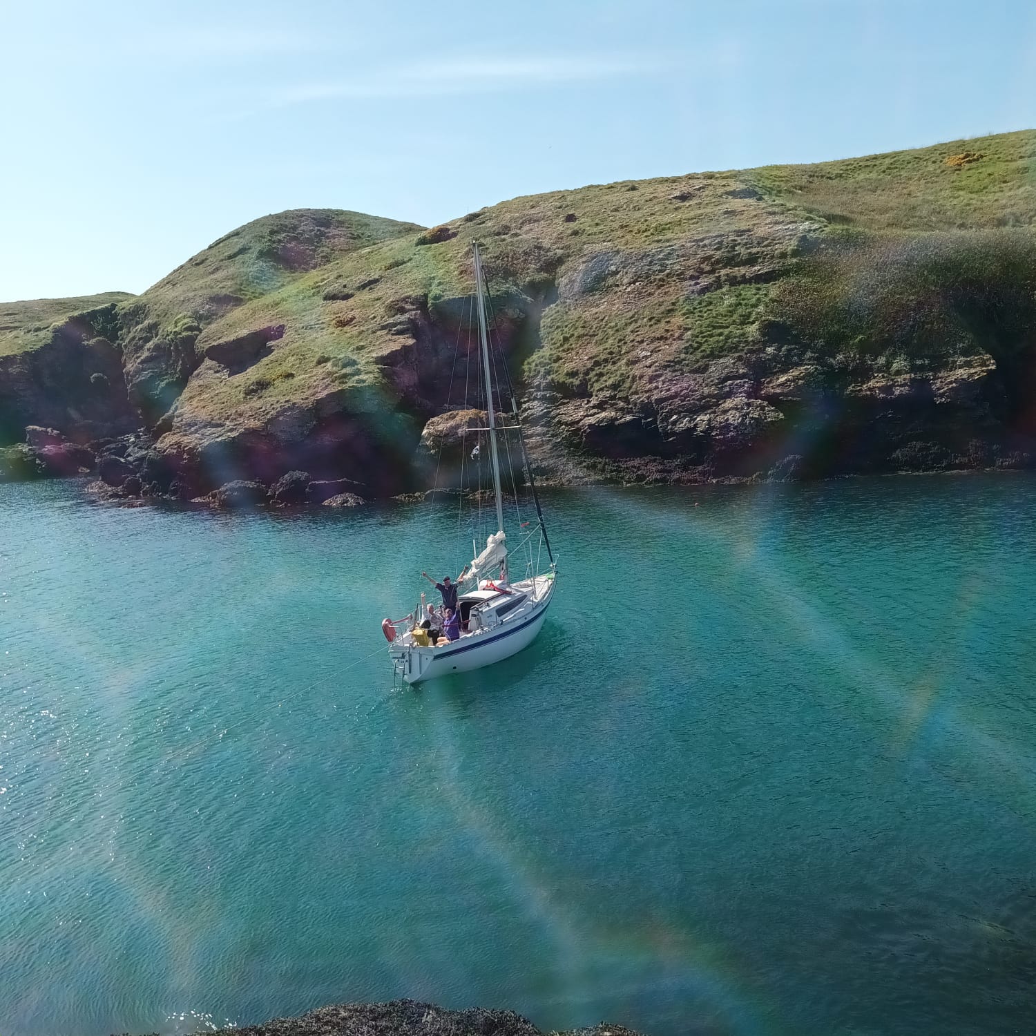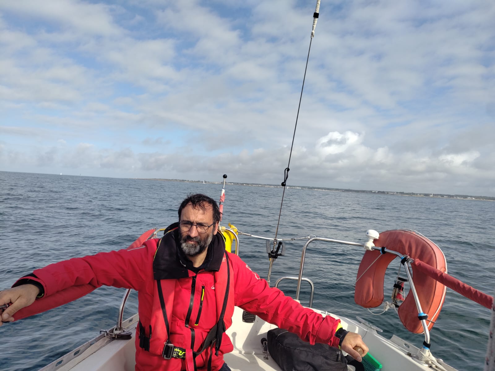 Nous partons vers Pen Men avec l’idée de faire le tour de Groix. Le clapot est assez fort au point que côté côte sauvage, il est difficile de progresser au près. On tire deux-trois bords carrés. On fait donc demi-tour, direction Port Tudy. Le vent est desormais à l’est. On atteint Port Tudy vers 14h30.