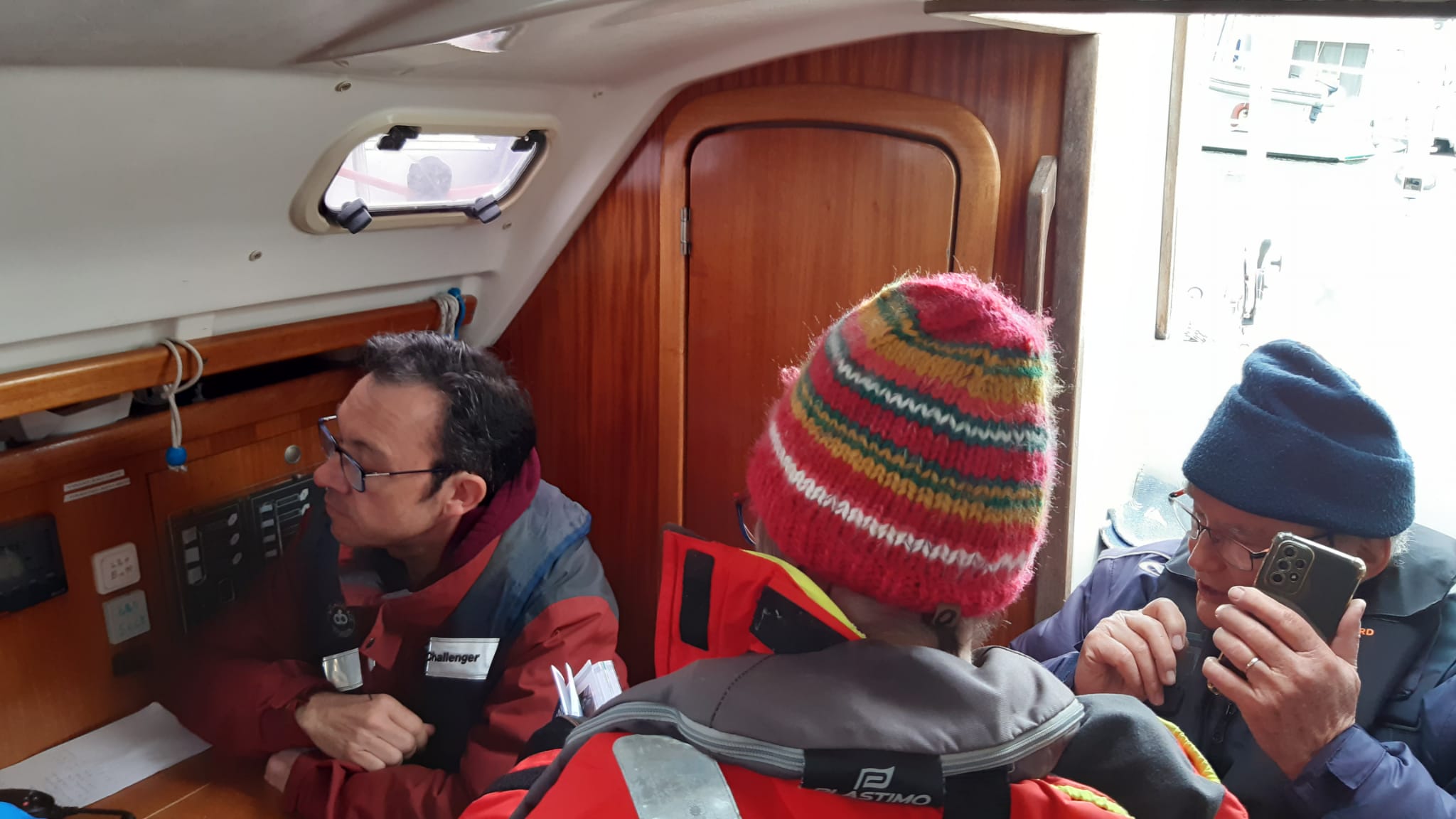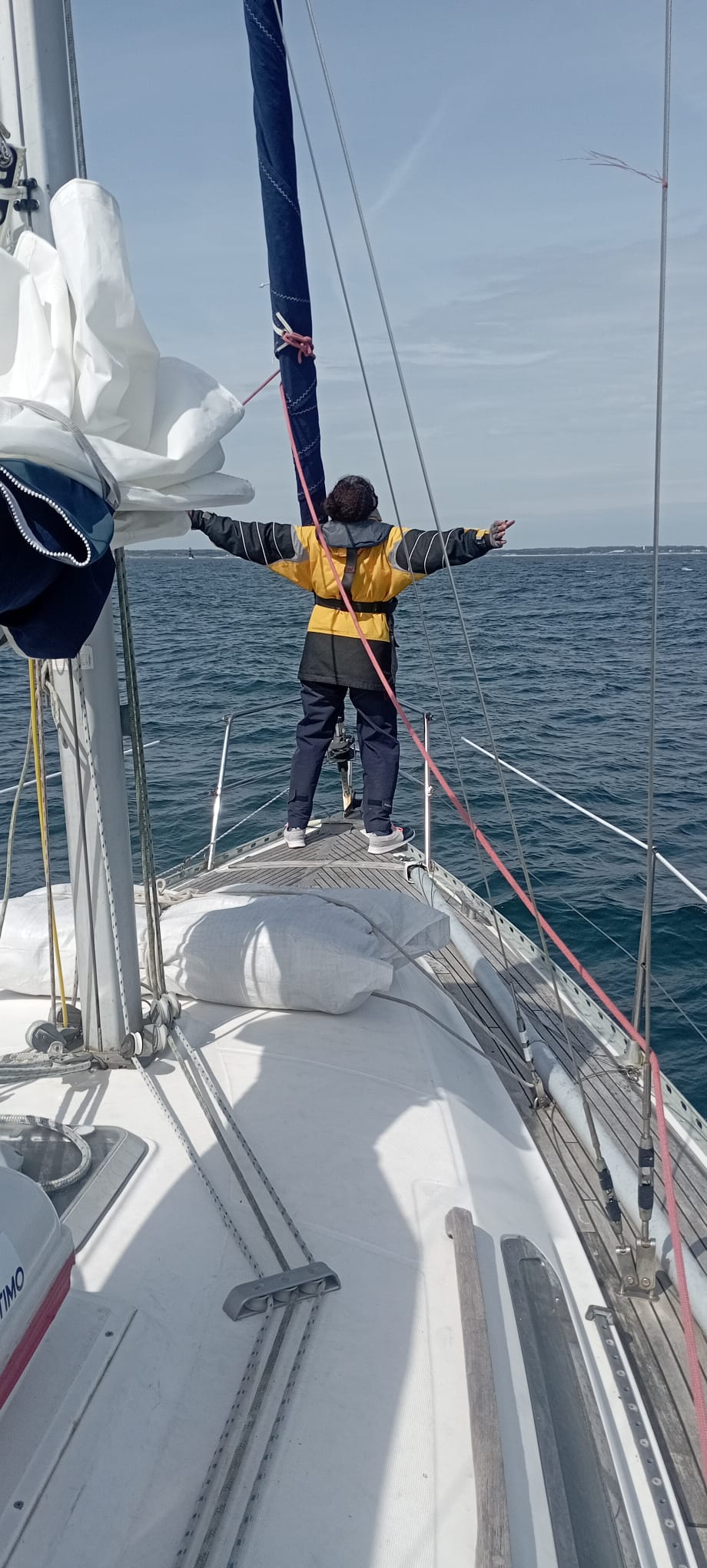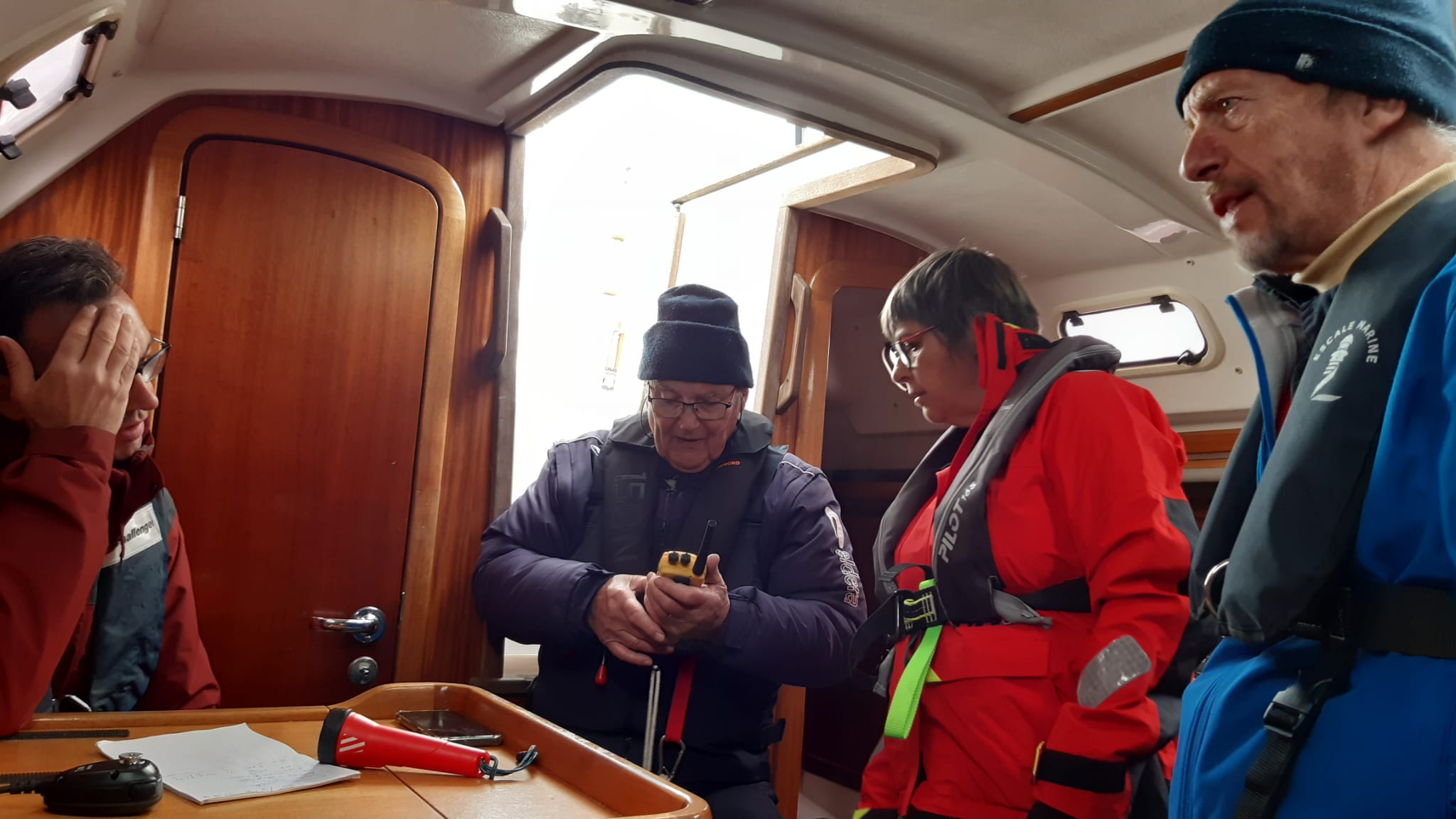Manœuvres de port effectuées par Frédérique et validation de l’essai VHF pour Jean Pierre.
