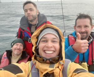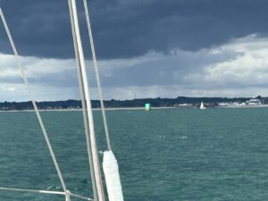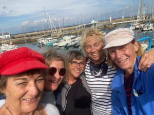 Muriel, cheffe de bord est sortie avec Claudie, Marie Pascale, Catherine et Nadine.RdV au bateau à 10 h 30; départ à 11h avec la marée. Les conditions météo sont différentes des prévisions puisque nous enregistrons plutôt du F3 dès le matin.11h : sortie du port au moteur puis envoi de